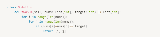 Étant donné un tableau d'entiers nums et un entier target, retourner les indices des deux nombres tels que leur somme est égale à target. Vous pouvez supposer que chaque entrée a exactement une solution, et vous ne pouvez pas utiliser le même élément deux fois. Vous pouvez retourner la réponse dans n'importe quel ordre.