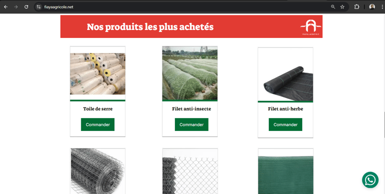 J'ai récemment eu l'opportunité de collaborer avec Fiaya Agricole, une entreprise sénégalaise spécialisée dans la vente de matériel agricole, notamment des serres de culture, ainsi que dans la production fruitière et légumière de haute qualité. Mon rôle consistait à développer leur site web dans le but d'augmenter leur visibilité en ligne et de simplifier leur activité commerciale.
