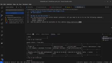 Le projet comprend également un volet de développement web avec l'intégration de microservices et la conteneurisation via Docker. Nous avons connecté notre application Flask à une base de données MySQL, qui enregistre l'historique des prédictions de prix des vols.